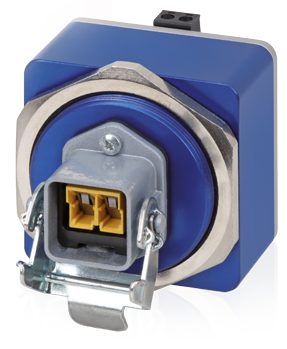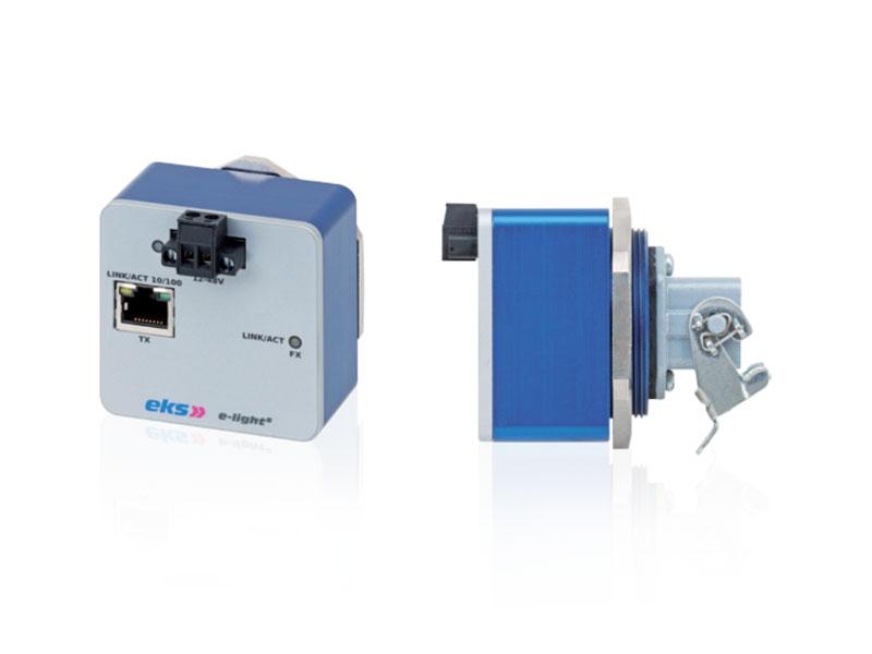 Das System e-light S ist eine neuartige Lösung für die optische Datenübertragung in der Feldebene. Sie besteht aus einem kompakten Ethernet-Medienkonverter einschließlich M50-Verschraubung und vorkonfektionierten Lichtwellenleiterkabeln mit Single- oder Multimodefasern, die in kundenspezifischen Varianten erhältlich sind. Die Lösung lässt sich an Schaltschranktüren oder Maschinengehäusen mit einer Wandstärke von bis zu 4 mm montieren und nach dem Plug-and-play-Prinzip in Betrieb nehmen.