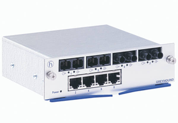 - Basiseinheit: 16 RJ45/TX Ports oder 8 RJ45/TX Ports und 8 SFP Slots (Fast Ethernet)