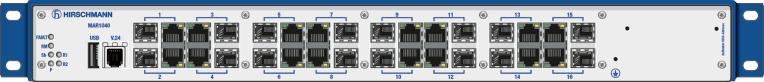 - MACH104-20/16TX = 20/16x 10/100/1000 Mbit/s RJ45, 4x FE/GE Combo Ports (Twisted Pair oder SFP)