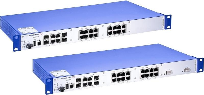 MACH104 Workgroup Switches gibt es in Versionen mit PoE / PoE plus sowie, nach Bedarf, mit redundantem Netzteil und 10 Gigabit Ethernet Ports.