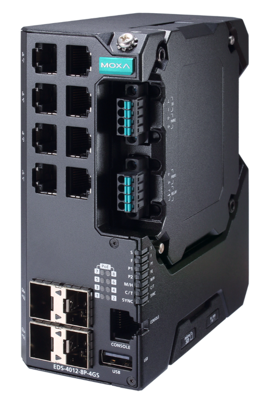 Die EDS-4012-Serie ist eine Reihe verwalteter Fast-Ethernet-Switches mit 12 Ports und der Option für vier 1-Gbit/s-Glasfaser-Uplink-Ports. Diese Serie bietet auch Modelle mit vier 10/100BaseT(X) 802.3af (PoE), 802.3at (PoE+) und 802.3bt-kompatiblen Ethernet-PoE-Portoptionen zum Anschluss von PoE-Geräten mit hoher Bandbreite. Redundante Ethernet-Technologien wie TurboRing, TurboChain und RSTP/STPin erhöhen die Zuverlässigkeit Ihres Systems und verbessern die Verfügbarkeit Ihres Netzwerk-Backbones. Die EDS-4012-Serie wurde speziell für anspruchsvolle Anwendungen wie Video- und Prozessüberwachung, ITS- und DCS-Systeme entwickelt, die alle von einem skalierbaren Backbone profitieren können. Die EDS-4012-Serie entspricht den industriellen Cybersicherheitszertifizierungen IEC62443-4-2 und IEC62443-4-1, die sowohl die Produktsicherheit als auch die Anforderungen des sicheren Entwicklungslebenszyklus abdecken und unseren Kunden dabei helfen, die Compliance-Anforderungen eines sicheren industriellen Netzwerkdesigns zu erfüllen