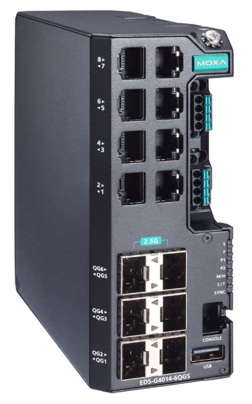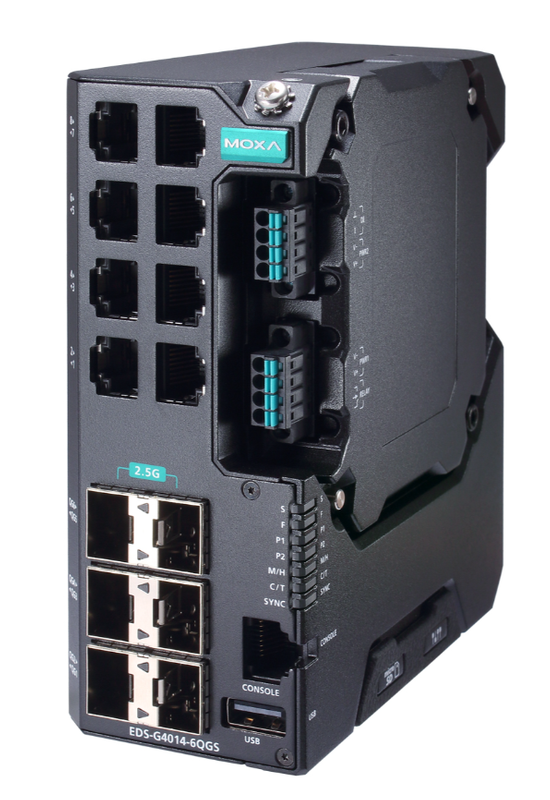 Die EDS-G4014-Serie ist mit acht Gigabit-Ethernet-Ports und sechs 2,5-Gbit/s-Glasfaserports ausgestattet und eignet sich daher ideal für die Aufrüstung eines bestehenden Netzwerks auf Gigabit-Geschwindigkeit oder den Aufbau eines neuen vollständigen Gigabit-Backbones. Die Gigabit-Übertragungsgeschwindigkeit erhöht die Bandbreite für eine höhere Leistung und kann große Mengen an Triple-Play-Diensten schnell über ein Netzwerk übertragen. Redundante Ethernet-Technologien wie TurboRing, TurboChain und RSTP/STPin erhöhen die Zuverlässigkeit Ihres Systems und verbessern die Verfügbarkeit Ihres Netzwerk-Backbones. Die EDS-G4014-Serie wurde speziell für anspruchsvolle Anwendungen wie Video- und Prozessüberwachung, ITS- und DCS-Systeme entwickelt, die alle von einem skalierbaren Backbone profitieren können. Die EDS-G4014-Serie entspricht den industriellen Cybersicherheitszertifizierungen IEC62443-4-2 und IEC62443-4-1, die sowohl die Produktsicherheit als auch die Anforderungen des sicheren Entwicklungslebenszyklus abdecken und unseren Kunden dabei helfen, die Compliance-Anforderungen eines sicheren industriellen Netzwerkdesigns zu erfüllen.